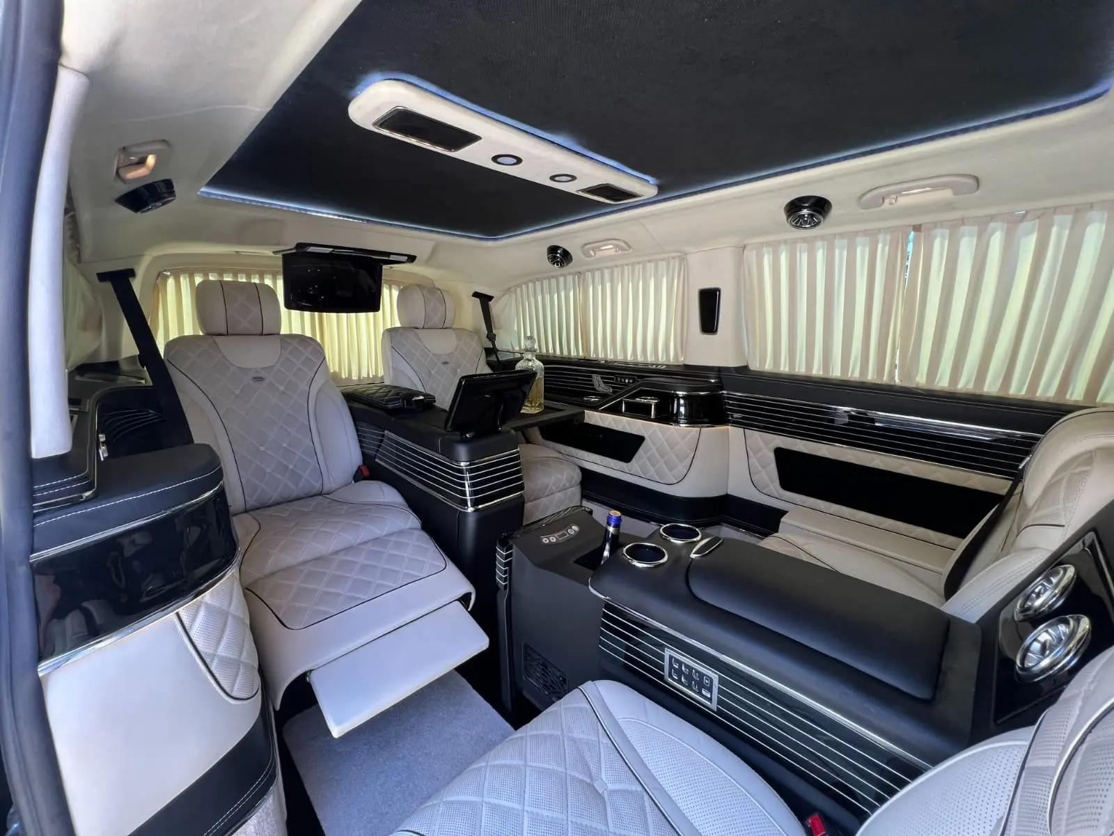 Tüm multimedya ve eğlence sistemleri, merkezi bir kontrol paneli üzerinden yönetilebilir. Işık ayarları, ses seviyesi ve ekran kontrolü gibi işlemler tek bir noktadan kolayca yapılır. Bu yapı, V Class VIP dizayn projelerinde teknolojinin konforla birleştiği bir deneyim sunar.